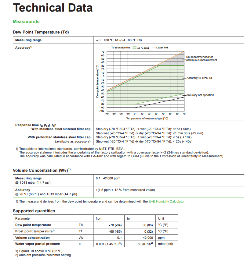provides other humidity-related measurands such as frost point temperature (Tf) and volume concentration (Wv).